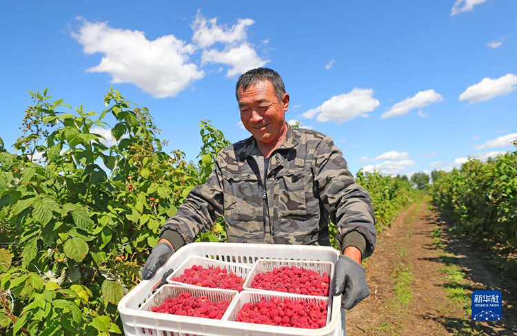 9月6日,在法庫縣登仕堡子鎮(zhèn)西登仕堡子村樹莓種植基地,農(nóng)民在搬運(yùn)樹莓。新華社記者 楊青 攝