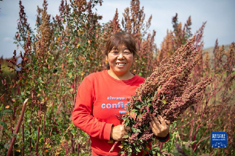在靜樂縣娘子神鄉(xiāng)南舍村,村民展示剛收割的藜麥(9月16日攝)。新華社記者 楊晨光 攝