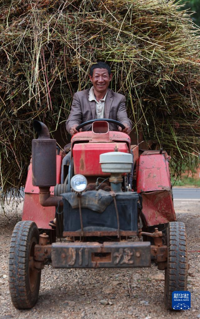 8月30日,在鹽源縣棉椏鎮(zhèn)木邦營(yíng)村,村民用拖拉機(jī)拉回一車苦蕎。新華社記者 江宏景 攝