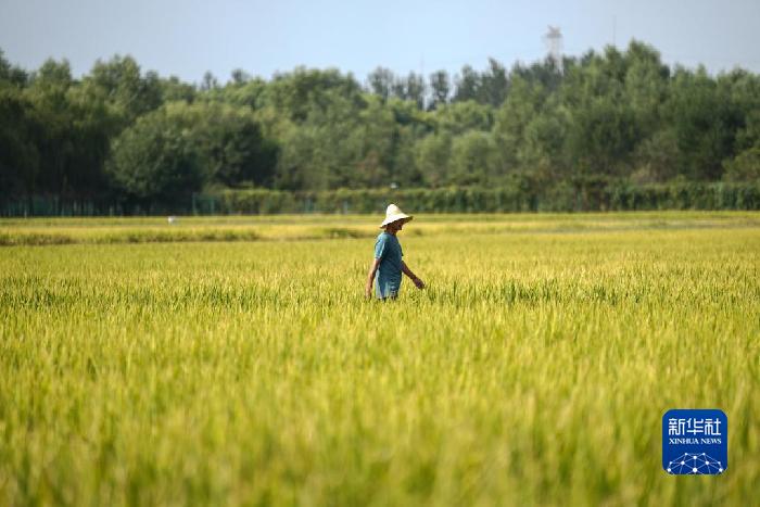 9月14日,農(nóng)民穿行在佃起村的稻田間。新華社記者 彭子洋 攝