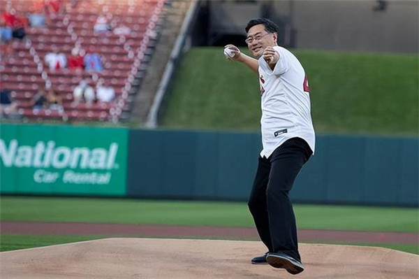 日前,中國(guó)駐美大使秦剛出席圣路易斯-南京姐妹友城43周年紀(jì)念活動(dòng),并為當(dāng)?shù)豈LB球隊(duì)圣路易斯紅雀的主場(chǎng)比賽開(kāi)球。圣路易斯作為1979年中美建交后第一個(gè)與中國(guó)建立友好城市的地方,有著重要意義。開(kāi)球現(xiàn)場(chǎng)秦大使身著43號(hào)隊(duì)服,正是象征著友好城市建立的43周年。