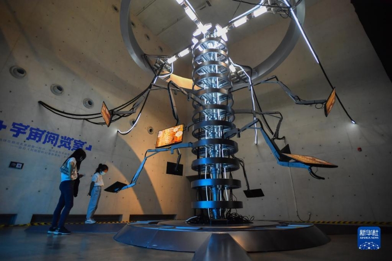 9月24日,參觀者在“劉慈欣科幻漫畫宇宙主題展”的宇宙閱覽室展區(qū)觀看展品。