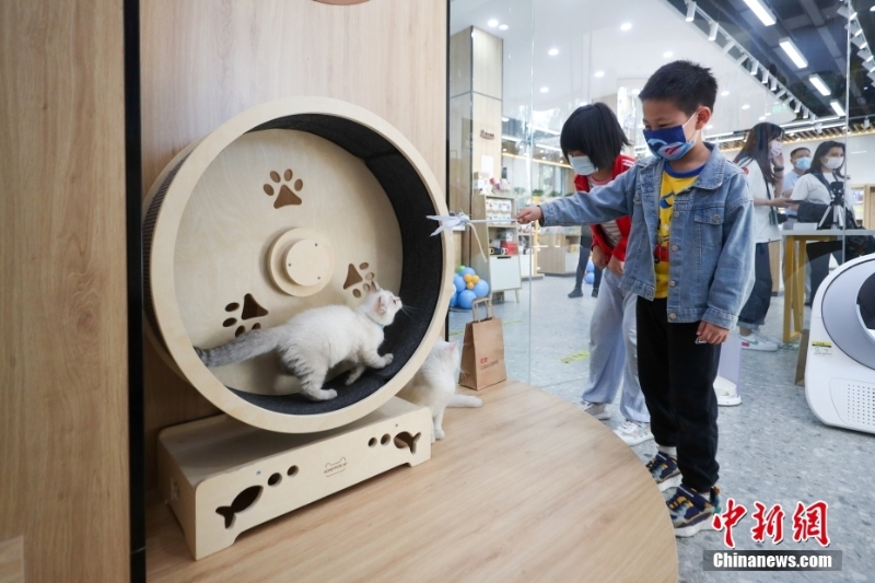 9月25日,北京市新華書店首家寵物主題書店開(kāi)業(yè)亮相,小朋友與書店內(nèi)的貓玩耍。該書店將書香文化與寵物主題結(jié)合,為讀者提供全新的沉浸式閱讀體驗(yàn)。 中新社記者 賈天勇 攝