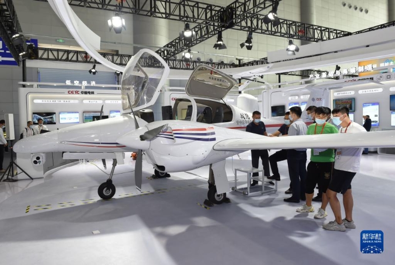 參觀者在安徽合肥舉辦的2022世界制造業(yè)大會(huì)上參觀展出的空中應(yīng)急指揮機(jī)(9月20日攝)。新華社記者 周牧 攝