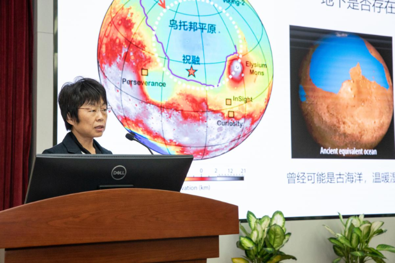 文章通訊作者、中科院地質(zhì)與地球物理研究所研究員陳凌作“火星烏托邦平原淺表分層結(jié)構(gòu)”成果解讀。(中科院地質(zhì)與地球物理研究所供圖)