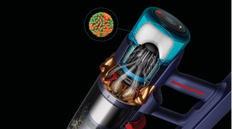 1.9米的HEPA濾網(wǎng)經(jīng)過?145?次折疊,可以有效捕獲99.99%小至0.1微米的顆粒物,甚至H1N1病毒和MS2噬菌體。戴森將整臺機器所有可能有間隙的地方都進行了密封,確保在做清理清掃的時候,吸進長桿、塵筒的污物,沒有一絲能通過機體泄露出來,有效避免家中出現(xiàn)二次污染。