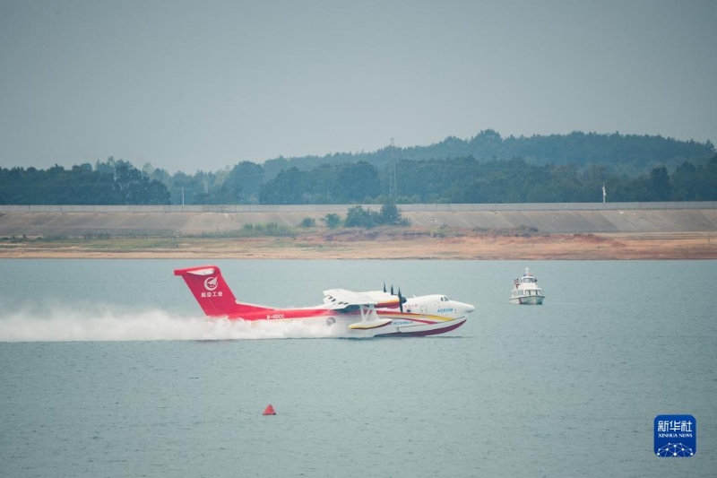 9月27日,“鯤龍”AG600M在水上滑行起飛。