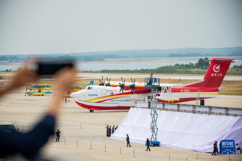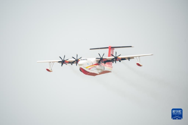 9月27日,“鯤龍”AG600M在進(jìn)行飛行投水功能演示。