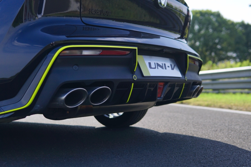 UNI-V是同價位車型中唯一配備電動升降后擾流板的車型,后擾流板能通過按鍵手動控制升降,升起時可以提供25公斤的下壓力。