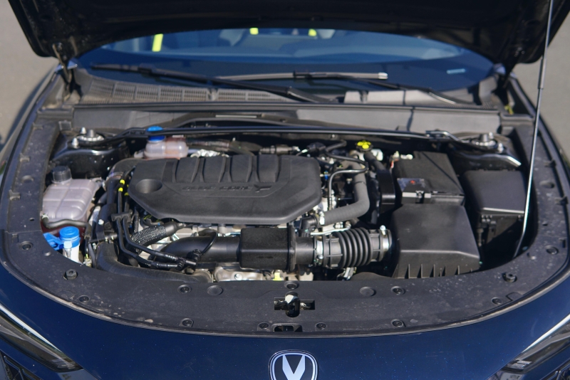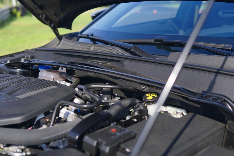 2.0T車型的發(fā)動機艙比1.5T車型多了一根頂吧,而這也是一個同價位少見的配置。在運動性方面,頂吧通過在車頭左右兩側(cè)避震器塔頂之間增加剛性連接來提升車頭的扭轉(zhuǎn)剛度,從而提升車頭對于轉(zhuǎn)向的響應(yīng)速度以及穩(wěn)定性。