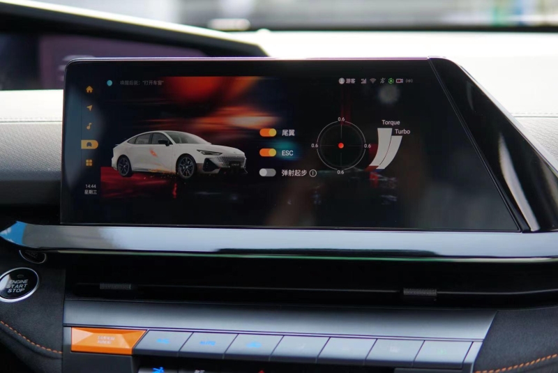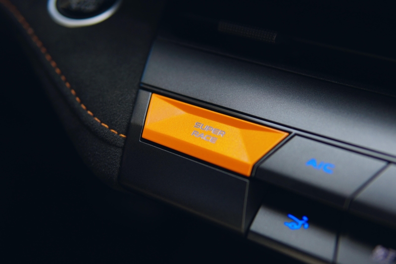 最值得一提的是SUPERRACE模式,在這個模式下電動后擾流板升起、排氣閥門打開,中控屏上開始顯示G值和渦輪增壓值,還有彈射起步的選項,運動氛圍拉滿。