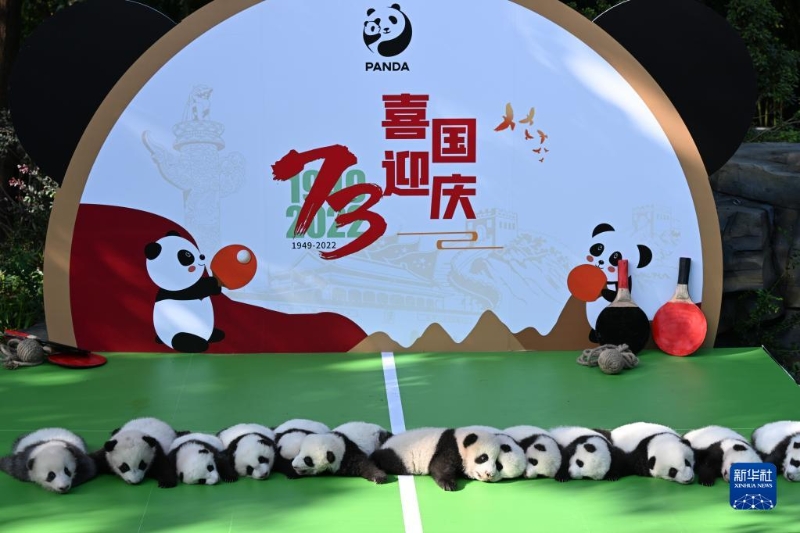 當日,為迎接即將到來的國慶佳節(jié),成都大熊貓繁育研究基地內(nèi)十余只2022級新生大熊貓寶寶一起亮相太陽產(chǎn)房。