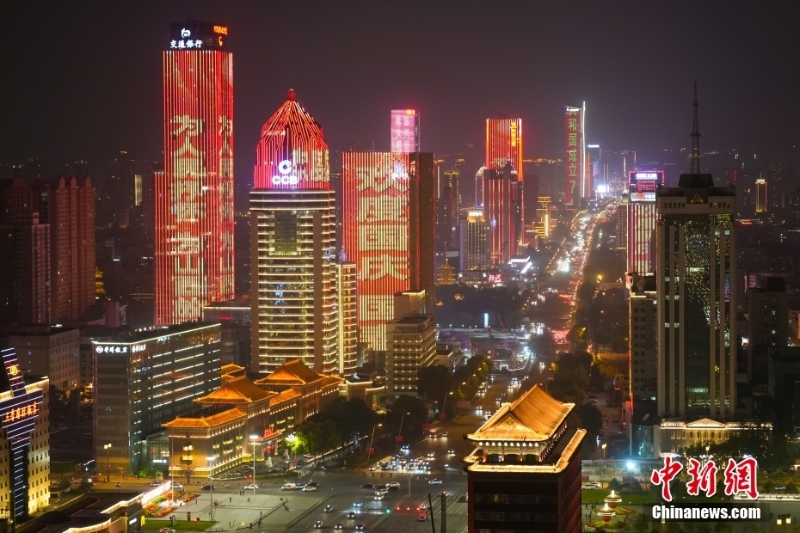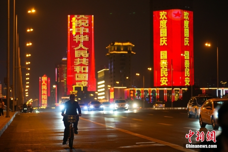 9月29日,山西太原迎澤大街高樓亮燈迎國(guó)慶。 中新社記者 武俊杰 攝