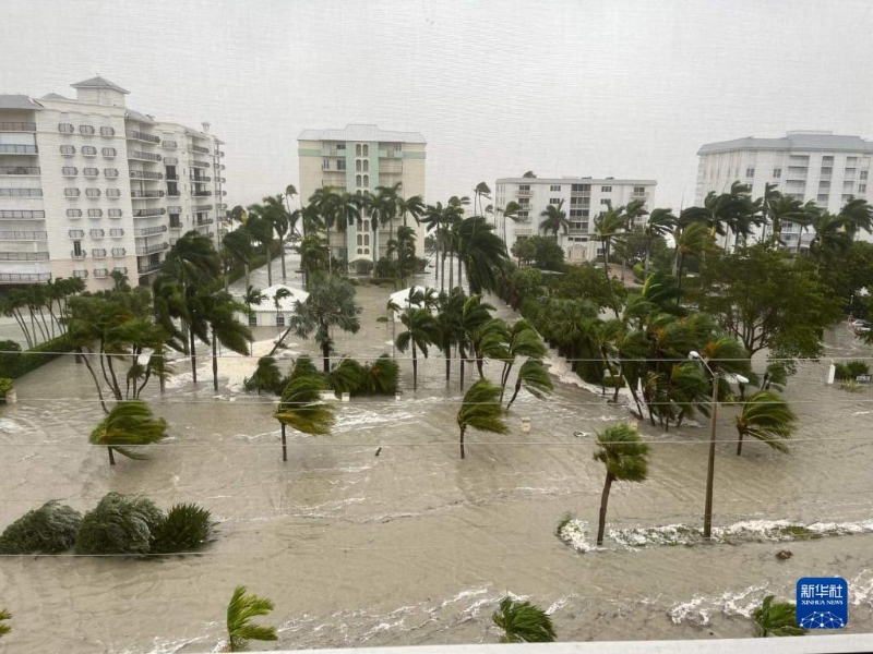 這張美國佛羅里達州南部沿海城市那不勒斯市政府9月28日發(fā)布的照片顯示,該市市區(qū)道路洪水泛濫。