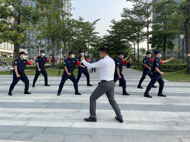 “出手要穩(wěn)、準(zhǔn)、狠,快速發(fā)力”“動作要干凈利落,盡可能一招制敵。”訓(xùn)練前,秩序人員王群詳細(xì)講解了擒敵拳的基本知識、動作要領(lǐng)及功能用途,并現(xiàn)場示范表演,使培訓(xùn)人員對擒敵拳有一個直觀的印象。王群通過示范演練、動作分解、重點指導(dǎo)、整體合練等方式使秩序人員快速熟練動作要領(lǐng),確保應(yīng)訓(xùn)盡訓(xùn),不留死角。對少部分身體不協(xié)調(diào)、學(xué)習(xí)進(jìn)度慢的學(xué)員,王群耐心細(xì)致地教學(xué),并逐一指導(dǎo)糾正個人動作,通過分解練習(xí)、組合練習(xí)和連貫練習(xí)。訓(xùn)練中,參訓(xùn)人員精神飽滿、士氣高昂,動作整齊規(guī)范,口號洪亮高亢,充分展現(xiàn)了南沙環(huán)球中心秩序隊伍的良好作風(fēng)和精神面貌。