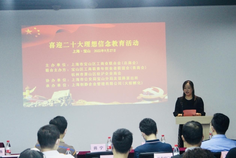 9月27日下午,由上海市寶山區(qū)工商業(yè)聯(lián)合會主辦,寶山區(qū)工商聯(lián)青年創(chuàng)業(yè)者聯(lián)誼會(青商會) 、杭州市蕭山企業(yè)駐滬商會聯(lián)合主辦,火炬孵化上海創(chuàng)靜企業(yè)管理有限公司承辦,上海市公安局寶山分局友誼路派出所協(xié)辦的上海市寶山區(qū)工商業(yè)聯(lián)合會喜迎二十大理想信念教育活動在火炬城市峰匯如期舉辦。