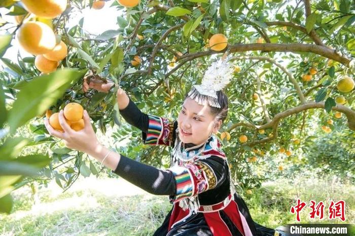 懷化市麻陽苗族自治縣的苗族姑娘正采摘冰糖橙。圖片來源:臺灣《聯(lián)合報》