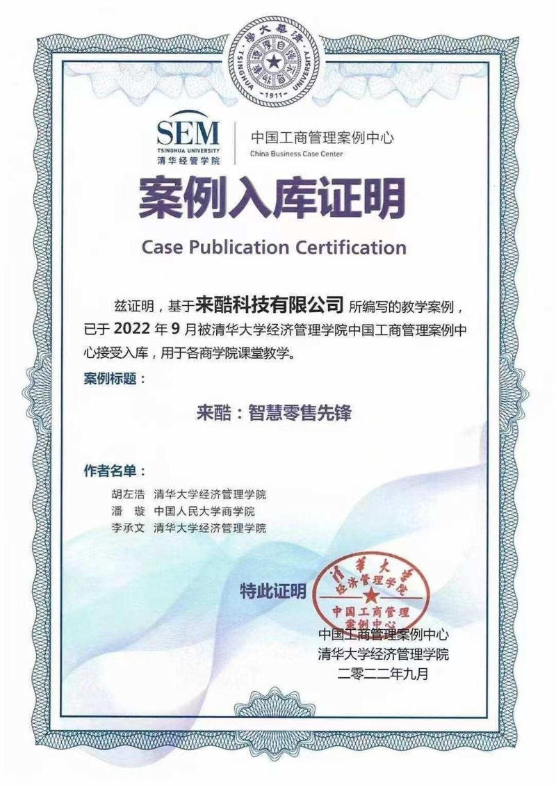 近日,基于來酷科技有限公司所編寫的《來酷:智慧零售先鋒》教學(xué)案例被清華大學(xué)經(jīng)濟(jì)管理學(xué)院、人民大學(xué)商學(xué)院收錄入教學(xué)案例庫,將用于各商學(xué)院課堂教學(xué)。