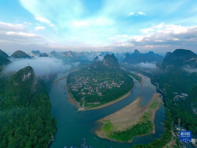 這是在廣西陽朔縣興坪鎮(zhèn)拍攝的漓江風光(2022年8月25日攝,無人機照片)。