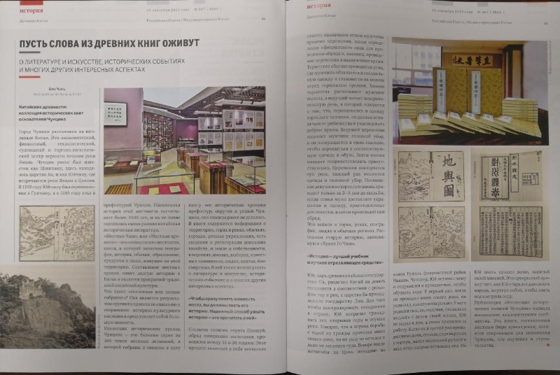 上合組織撒馬爾罕峰會期間,在重慶從事地方志工作的鄒川題為“讓書寫在古籍里的文字活起來”的署名文章在俄文雜志《中國風》上合特刊(俄文名《ДЫХАНИЕ КИТАЯ》)2022年第4期成功發(fā)表,這也是“重慶”首次登上該雜志。
