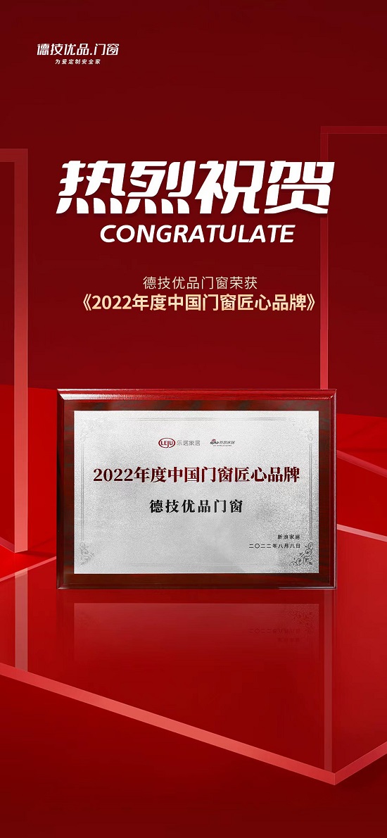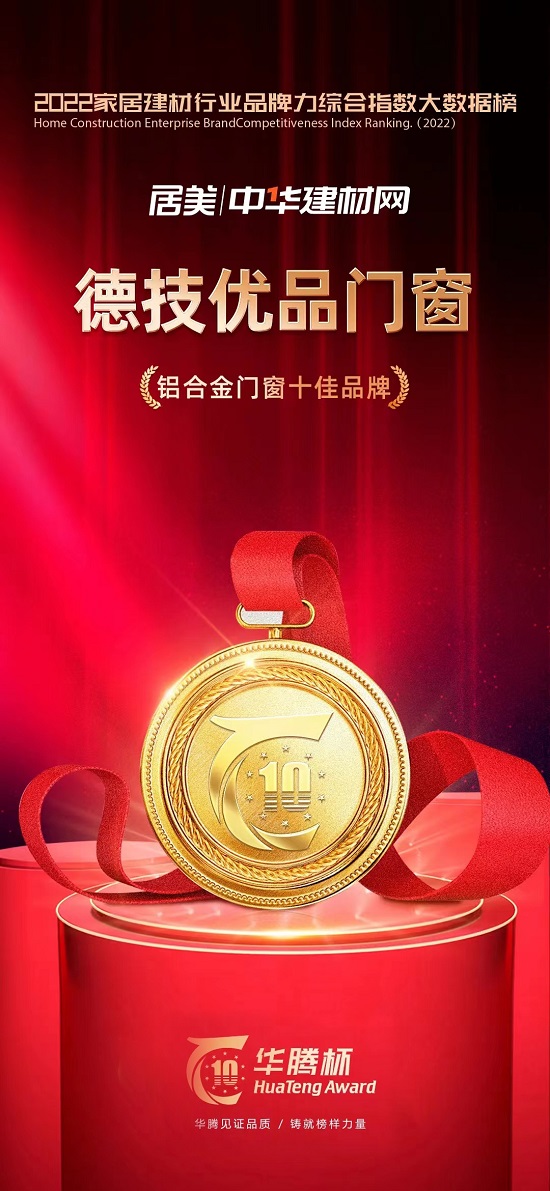 有一分耕耘便有一分收獲,2022年,德技優(yōu)品門窗憑借過硬的品牌實力,躋身消費者最喜歡的“十大鋁合金門窗品牌”,榮膺“2022年度中國門窗匠心品牌”榮譽,并且連續(xù)四年蟬聯(lián)【中楹榜】榜單,獲得“鋁合金門窗影響力品牌”稱號!
