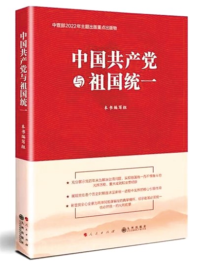 23.3萬字、共6章、112幅彩色插圖……由中共中央臺灣工作辦公室組織編寫的《中國共產(chǎn)黨與祖國統(tǒng)一》近日出版。通俗易懂的語言,圖文并茂的編排,豐富翔實的史料,串聯(lián)起中國共產(chǎn)黨為解決臺灣問題、實現(xiàn)祖國統(tǒng)一不懈奮斗的光輝歷程。中央臺辦主任劉結(jié)一在引言中寫道,該書充分彰顯了中國共產(chǎn)黨在各個時期為追求祖國統(tǒng)一發(fā)揮的核心引領(lǐng)作用、全心全意為兩岸同胞謀福祉的真摯情懷,昭示祖國必須統(tǒng)一也必然統(tǒng)一的歷史規(guī)律和光明前景。