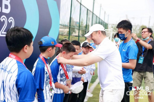MLB中國區(qū)董事總經(jīng)理祁冬在2022 MLB CUP青少年棒球公開賽現(xiàn)場