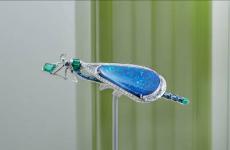 一個多世紀(jì)以來,蜻蜓一直是卡地亞的創(chuàng)作主題。如今,這款胸針帶來嶄新風(fēng)貌:蜻蜓的翅膀以一顆20.09克拉歐泊打造,虹彩色調(diào)宛如陽光下閃爍的翅膀光暈。歐泊周圍飾以富有紋理的白水晶,正如蜻蜓翅膀映射的光線。