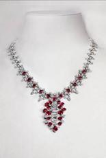 這件作品延續(xù)卡地亞混合多種造型的設(shè)計手法,完全基于寶石本身構(gòu)建結(jié)構(gòu),利用寶石的不同形狀,將一組28顆產(chǎn)自莫桑比克的風(fēng)箏形紅寶石與大量六邊形、梨形、方形及明亮式切割鉆石組合搭配。艷粉色和鉆石的純粹光芒營造鮮明對比,精心排列之余展現(xiàn)平衡的美感。