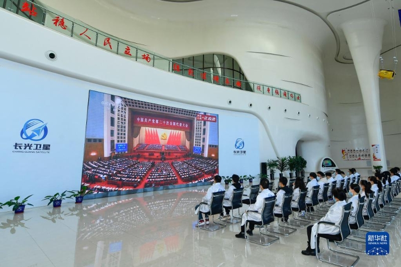 10月16日,在吉林省長春市,長光衛(wèi)星技術(shù)股份有限公司科研人員收看中國共產(chǎn)黨第二十次全國代表大會開幕會。