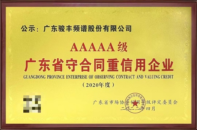 人無信不立,業(yè)無信不興,誠實守信無疑是企業(yè)的立身之本、發(fā)展之基。4月,廣東省市場協(xié)會公示了2020年度首批“廣東省守合同重信用企業(yè)”等級評定結(jié)果。本次守重等級評定中,全省共有618家企業(yè)在廣東省市場協(xié)會守合同重信用申報系統(tǒng)完成首批申報,最終有285家企業(yè)通過廣東省“守合同重信用企業(yè)”等級評定,其中5A級74家,包括廣東駿豐頻譜股份有限公司在內(nèi)的多家企業(yè)上榜。