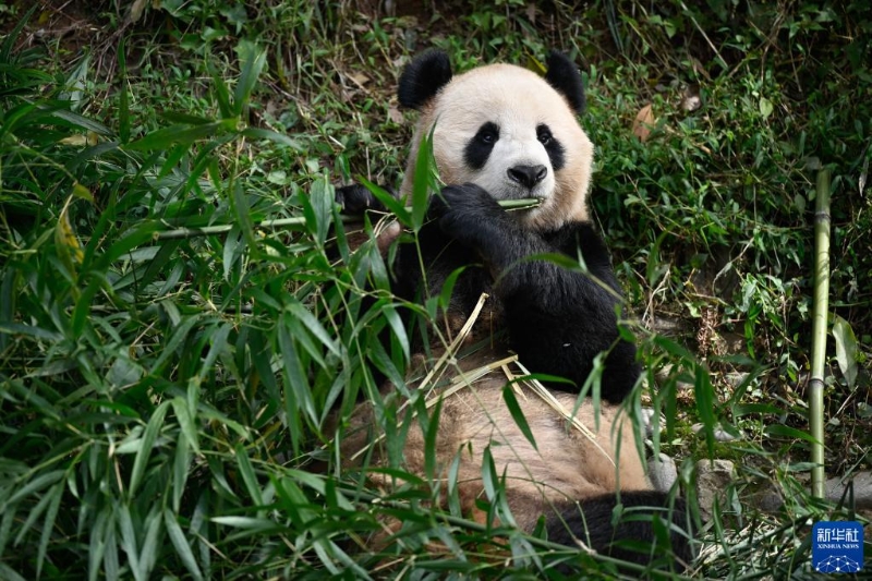 10月17日,在中國(guó)大熊貓保護(hù)研究中心雅安基地,大熊貓“京京”在吃竹子。