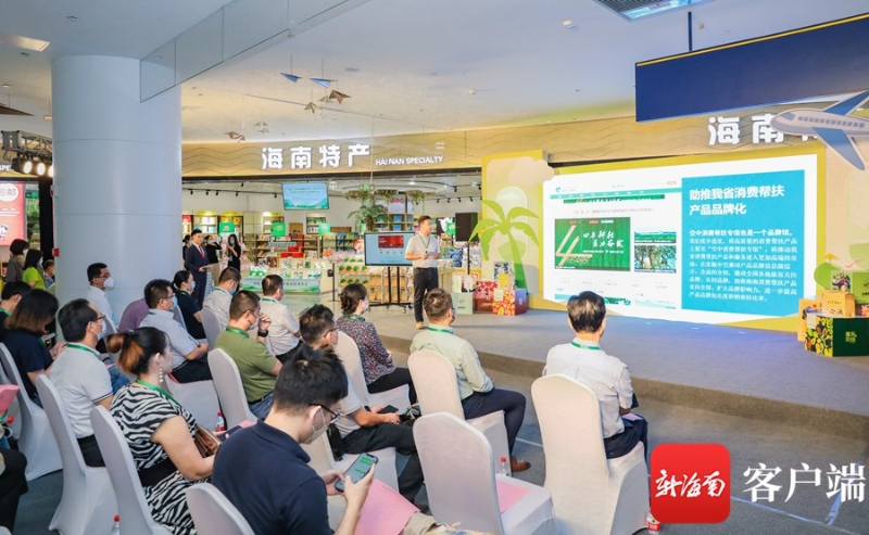 10月17日上午,海南空中消費幫扶專館上線儀式暨海南消費幫扶產(chǎn)品品牌推介會在??诿捞m國際機(jī)場的美蘭奧特萊斯舉行。記者 李昊 攝