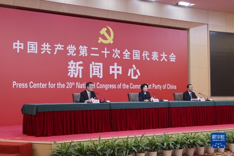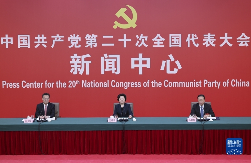 10月20日,中國共產(chǎn)黨第二十次全國代表大會新聞中心舉行記者招待會。中央對外聯(lián)絡(luò)部副部長沈蓓莉,外交部黨委委員、副部長馬朝旭圍繞“習(xí)近平外交思想指引中國特色大國外交開拓前行”主題與記者交流。新華社記者 陳建力 攝