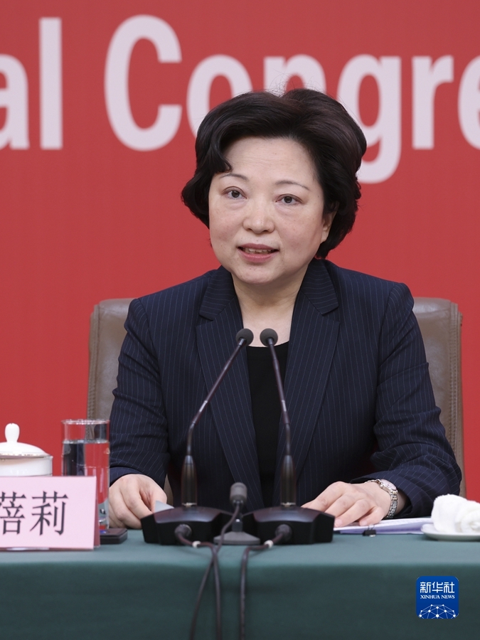 這是沈蓓莉在記者招待會上。新華社記者 張玉薇 攝