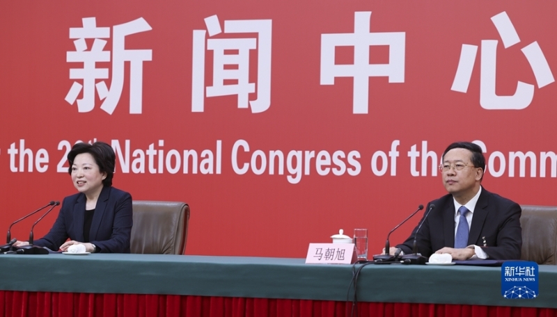 10月20日,中國共產(chǎn)黨第二十次全國代表大會新聞中心舉行記者招待會。中央對外聯(lián)絡(luò)部副部長沈蓓莉,外交部黨委委員、副部長馬朝旭圍繞“習(xí)近平外交思想指引中國特色大國外交開拓前行”主題與記者交流。 新華社記者 張玉薇 攝