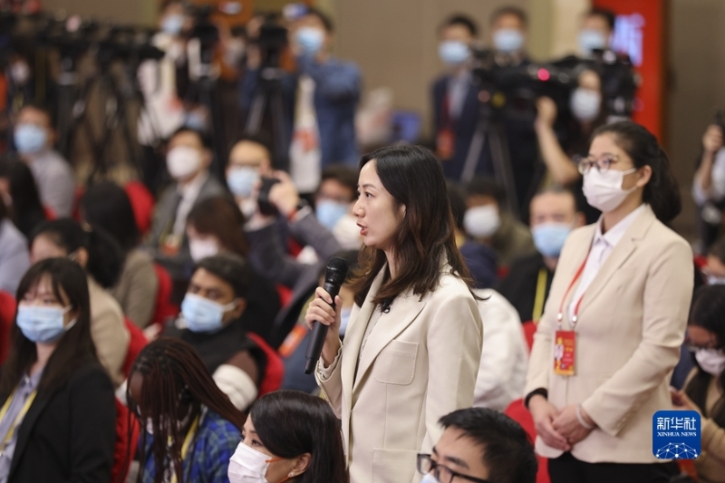 這是記者在分會場舉手提問。新華社記者 金良快 攝
