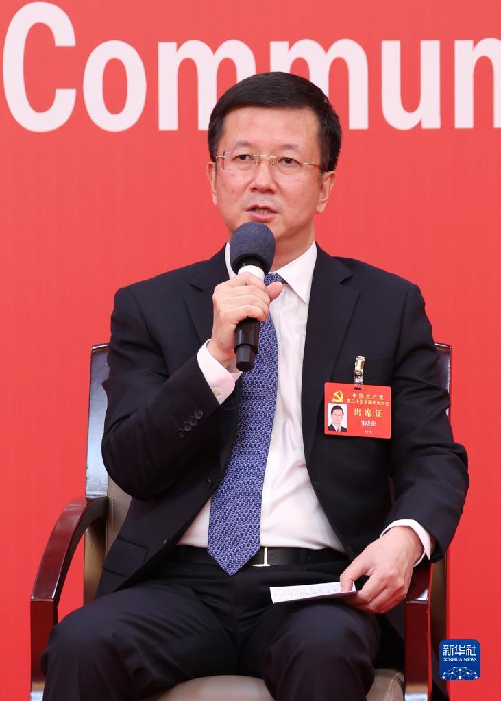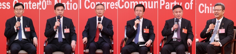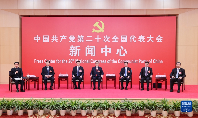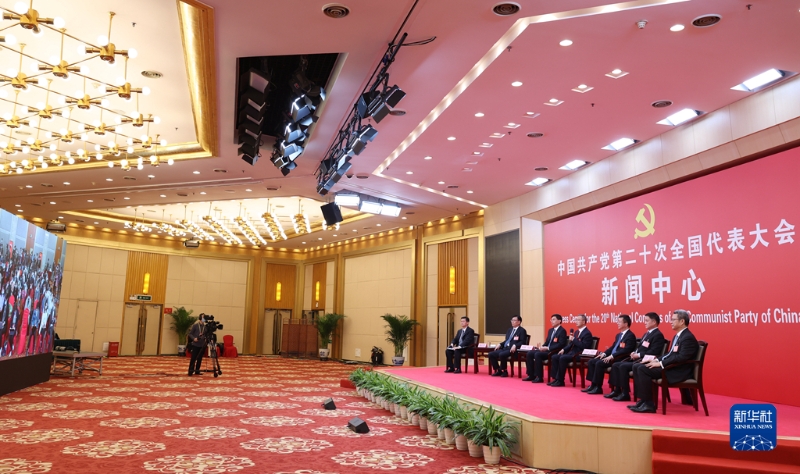 10月20日,中國共產(chǎn)黨第二十次全國代表大會新聞中心舉行集體采訪。青海、寧夏、新疆、中央和國家機關(guān)、中央金融系統(tǒng)、中央企業(yè)系統(tǒng)(在京)代表團新聞發(fā)言人出席,介紹代表團學(xué)習(xí)討論二十大報告情況,并回答記者提問。新華社記者 陳建力 攝