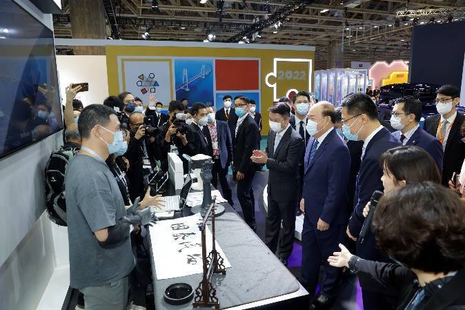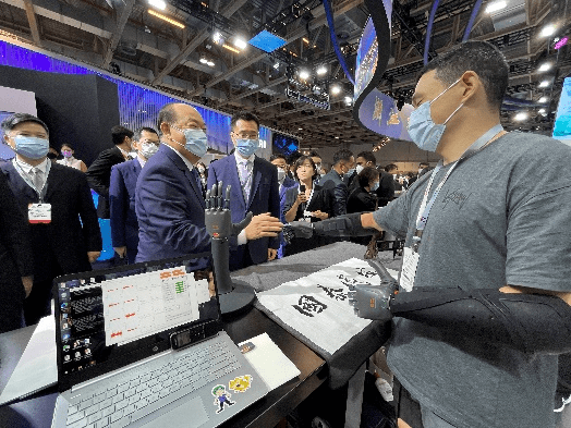 展會(huì)開(kāi)啟第一天,澳門(mén)特別行政區(qū)行政長(zhǎng)官賀一誠(chéng)、中央人民政府駐澳門(mén)特別行政區(qū)聯(lián)絡(luò)辦公室副主任嚴(yán)植嬋、外交部駐澳門(mén)特別行政區(qū)特派員公署署理特派員王冬、浙江省人民政府副省長(zhǎng)盧山、澳門(mén)特別行政區(qū)立法會(huì)主席高開(kāi)賢等出席了開(kāi)幕式并參觀了展覽。澳門(mén)特首賀一誠(chéng)、浙江省副省長(zhǎng)盧山一行人來(lái)到BrainCo強(qiáng)腦科技展臺(tái),一下被一款“假手”吸引住目光,盧山副省長(zhǎng)和BrainCo強(qiáng)腦科技工作人員向特首介紹了“假手“的功能:一款用大腦控制、能隨意做任何動(dòng)作的智能仿生手??吹诫p臂佩戴仿生手的倪敏成自如地動(dòng)每一根手指,在場(chǎng)人員不禁鼓起掌來(lái)。