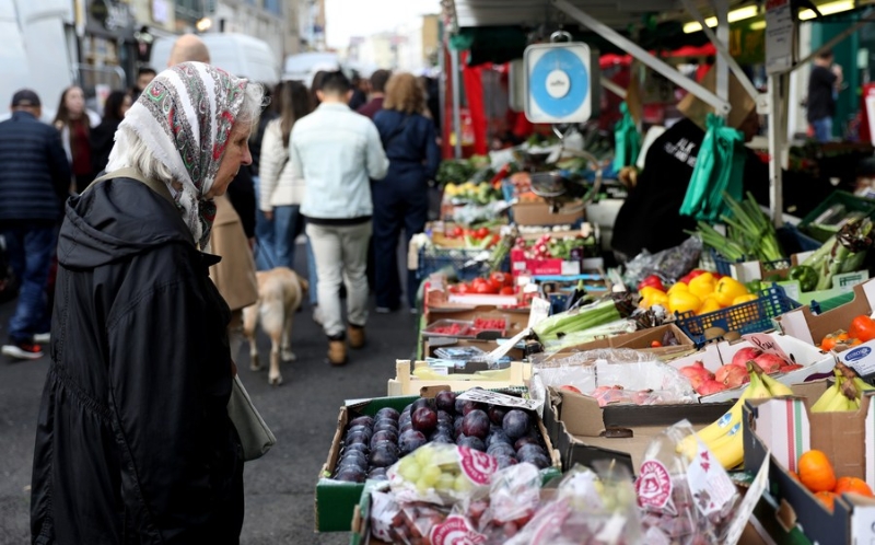 10月22日,一名女子在英國(guó)倫敦波托貝洛市場(chǎng)選購(gòu)蔬果。新華社記者李穎攝