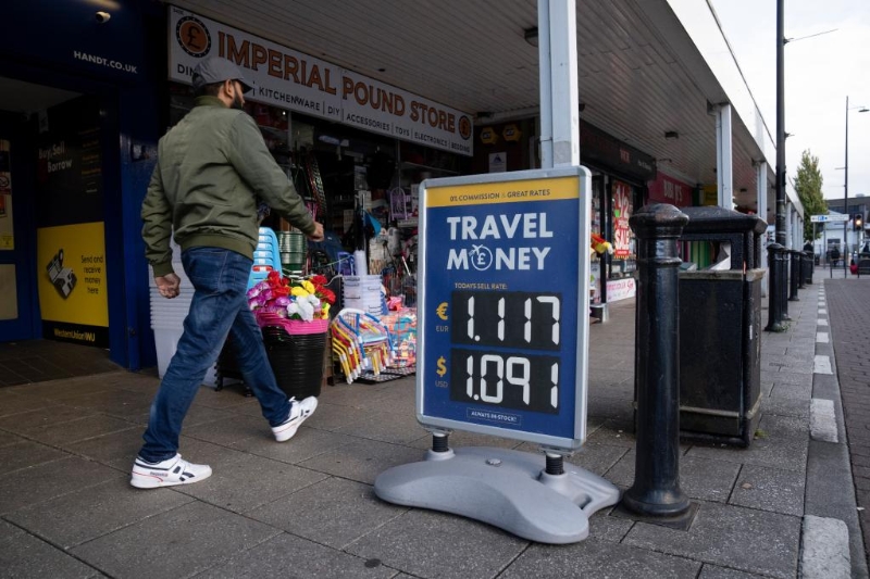 英國(guó)政府近期宣布該國(guó)50年來(lái)最大規(guī)模的減稅措施以提振經(jīng)濟(jì),卻引發(fā)金融市場(chǎng)大幅震蕩。圖為一名男子10月7日走過(guò)曼徹斯特一處貨幣兌換點(diǎn)。新華社發(fā)(喬恩·休珀攝)