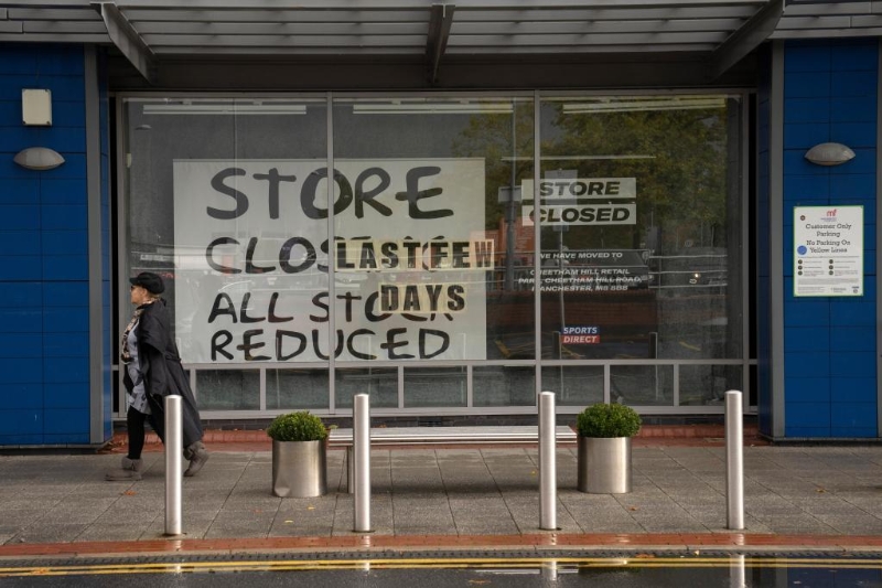 10月7日,在英國曼徹斯特,一名行人走過一家關(guān)閉的店鋪。新華社發(fā)(喬恩·休珀攝)