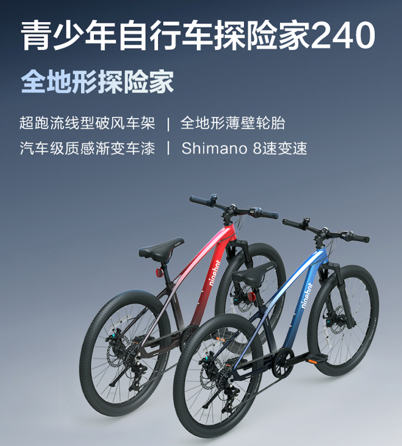 青少年骨骼不是成人縮小版,青少年自行車也不應(yīng)該只是縮小版的成人自行車。著眼于此,九號(hào)公司于10月24日舉辦的秋季新品發(fā)布會(huì)上,重磅釋放“九號(hào)青少年自行車探險(xiǎn)家240”,下放大量高端技術(shù)設(shè)計(jì),為兒童創(chuàng)造更高標(biāo)準(zhǔn)的騎行體驗(yàn)。體驗(yàn)夠出色,才能沉浸享受風(fēng)景;性能夠出眾,才能不負(fù)“全地形探險(xiǎn)家”之名。