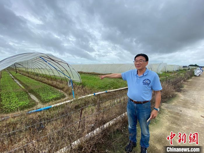 圖為臺(tái)商陳奕霖在??谕顿Y租用的2000畝的蔬果基地,為線下驛站提供蔬果配送。 符宇群 攝