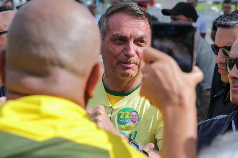 10月30日,巴西右翼陣營(yíng)自由黨候選人、現(xiàn)任總統(tǒng)博索納羅在里約熱內(nèi)盧一處投票站參加投票前與支持者交談。新華社記者王天聰攝