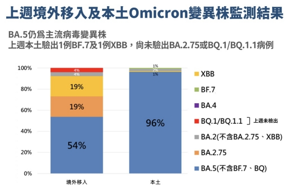 羅一鈞表示,上周共完成165例病毒基因定序,其中有139例為本土個(gè)案、29例境外移入,本土個(gè)案中仍有134例為BA.5,占比達(dá)96%,其他則包含3例BA.2,以及本土首見的BF.7、XBB各1例。