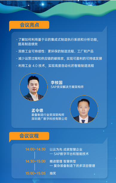 會(huì)中,來自SAP中國的資深解決方案架構(gòu)師李枝國,以及來自建廣數(shù)科的裝備制造行業(yè)資深架構(gòu)師孟令德,分別為來賓分享了SAP數(shù)字平臺(tái)和智能技術(shù)應(yīng)用,以及復(fù)雜裝備制造下的多項(xiàng)目管理等,與企業(yè)業(yè)務(wù)發(fā)展緊密相關(guān)的信息化議題。幫助企業(yè)了解如何利用基于SAP云的集成式制造執(zhí)行系統(tǒng)和分析系統(tǒng),提高制造績效;洞察工業(yè)可持續(xù)性,打造更環(huán)保的制造流程、工廠和產(chǎn)品;端到端的多項(xiàng)目管理,實(shí)現(xiàn)戰(zhàn)略到項(xiàng)目的成功落地;減少運(yùn)營過程和供應(yīng)鏈的碳排放,實(shí)現(xiàn)盈利性的可持續(xù)發(fā)展;以及利用工業(yè)4.0技術(shù),實(shí)現(xiàn)高度自動(dòng)化的智能制造流程等前沿觀點(diǎn),為企業(yè)的數(shù)字化建設(shè)提供了有效的思路與建議。