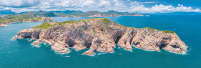 香港地質(zhì)公園的早白堊世流紋質(zhì)火山巖柱群源自約1.4億年前該地區(qū)的火山活動。巖柱罕有地由富含二氧化硅的酸性流紋質(zhì)火山巖形成,分布在西貢糧船灣等約100平方公里海陸區(qū)域。這些巖柱的直徑平均為1.2米,最粗達3米,現(xiàn)存總厚度估計達400米,露出地表的高度達100米。圖為香港地質(zhì)公園甕缸群島——橫洲,小島展示了柱狀節(jié)理,以及海蝕崖、海蝕洞、海蝕拱等海岸侵蝕地貌。吳善斌攝(人民視覺)
