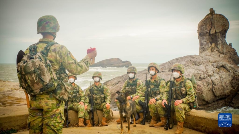 駐守在臺山島上的東部戰(zhàn)區(qū)陸軍某海防旅一連官兵,用快板的形式學習宣傳黨的二十大精神(10月28日攝)。新華社發(fā)(楊慶祥 攝)