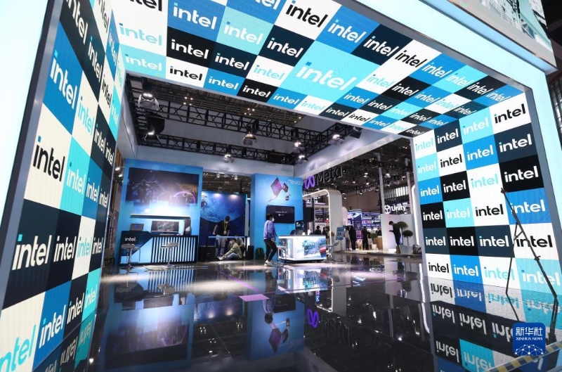 11月2日,工作人員在英特爾公司進(jìn)博會(huì)展臺(tái)進(jìn)行布展調(diào)試。